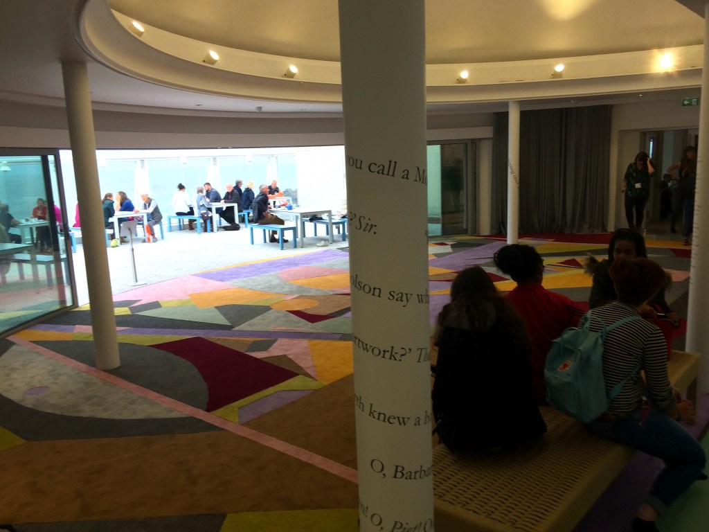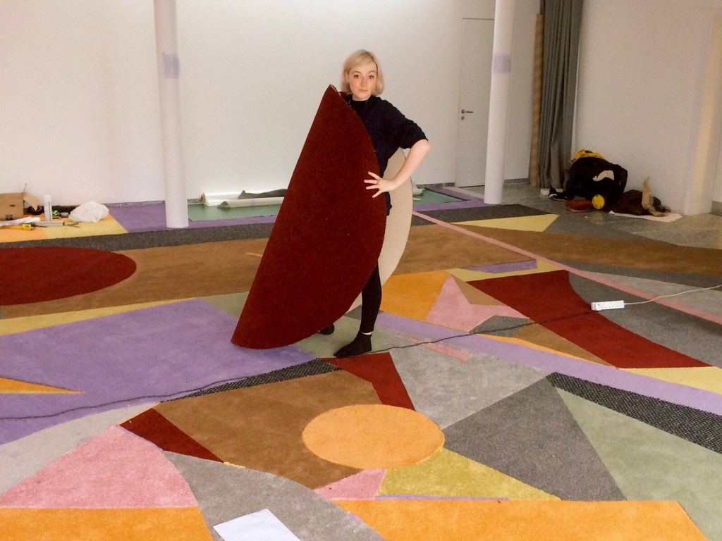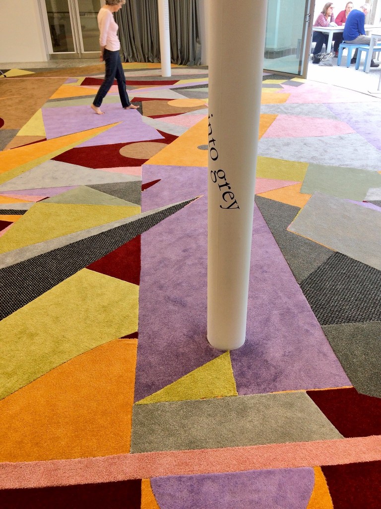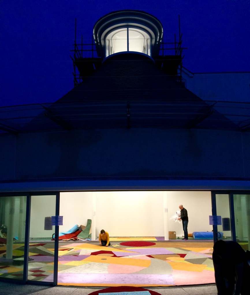 A collaborative site-specific installation with artist Ben Sanderson in the new space at Tate St Ives. Ben and Ella created a modernist lounge, including a 120m² ‘modernist’ carpet (hand-cut and installed by the artists), and six poems exploring the tenets of modernism displayed on pillars.